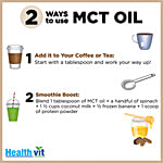 MCTs (medium-chain triglycerides) provide you with an alternative source of energy and can help improve your body's ability to burn body fat as a source of fuel.MCT oil is naturally sourced from premium coconuts, ideal for a keto or ICHF diet, rich in essential fats. It is flavourless and odourless. Medium-chain triglycerides (MCTs) are known as "healthy fats" that may help your body achieve ketosis - the process by which your body burns fat for energy. MCTs are capable of reducing bad bacteria without removing good bacteria. It is because MCTs have antibacterial properties and it helps us maintain good gut and digestive health. It supports energy & mental focus on a low-carb diet. While on a low-carb or ketogenic diet, your liver produces ketones to supply your brain with the energy usually provided by carbs and sugar. MCT oil can help support increased energy, stamina and mental focus in this low-carb state. It supports fat-burning potential because it is utilized by the body a little differently than other sources of fat.