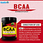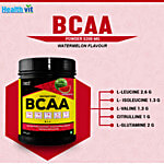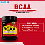 Healthvit BCAA contains 3g Leucine, 1.5g Isoleucine,1.5g Valine, 2g L-Glutamine,1g Citrulline Malate in the ratio of 2:1:1, the supplement supercharges your body's amino acid levels to aid muscle synthesis of new cells and prevent post-workout fatigue. The essential amino acids leucine, isoleucine, and valine act as transport vehicles for faster absorption, which translates to faster post-workout recovery and better performance results. Boost muscle growth and metabolism with this instantized BCAA branched-chain amino acids that boost muscle strength fast. It decreases systolic blood pressure and increased nitric oxide levels. Nitric oxide causes blood vessels to dilate, which lowers blood pressure