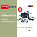 Prestige Hard Anodised Induction Base Multi-Kadai - With Glass Lid, Dhokla, Patra Plate, Idli Plates, 28cm, Black, 1 pc