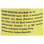 Each 10ml contains - Arq Keora 2.85 ml, Qand Safaid 7.1 g, Sat Leemun 14 mg