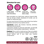 Garcinia, Green Tea Extract, Erythritol, Malto Dextrin & Approved Diluents. Contains Added Flavour (Natural & Nature Identical Flavouring Substance - Lemon).