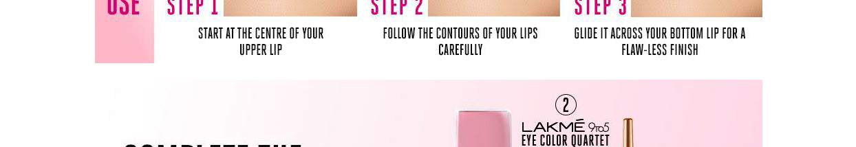 An unstoppable matte, for an unstoppable you! Introducing Lakmé 9to5 Primer+Matte Lipstick, with 2x built-in primer that gives your lips a long-lasting, smooth matte finish. It glides onto your lips smoothly and feels extremely comfortable and lightweight. The built-in primer ensures that the colour settles onto your lips evenly. With 14-hour long stay power, it is your perfect companion in conquering the day! Now say goodbye to touch-ups through the day, as this lipstick was made for the woman who doesn’t stop! Available in 20 intensely rich, matte shades, your search for the perfect colour ends with Lakmé 9to5 Primer+Matte Lipstick. Choose from a wide range of nudes, pinks, reds, browns, and plums that deliver rich colour without drying out your lips. It glides on smoothly for a flawless matte finish and a vibrant colour payoff. Pair it with Lakmé 9to5 Primer+Matte Perfect Cover Foundation, Lakme 9TO5 Eye Colour Quartet Eye Shadow and Lakmé Eyeconic Kajal to flaunt your fabulous looks round the clock! Look good and feel unstoppable as you put on your makeup.