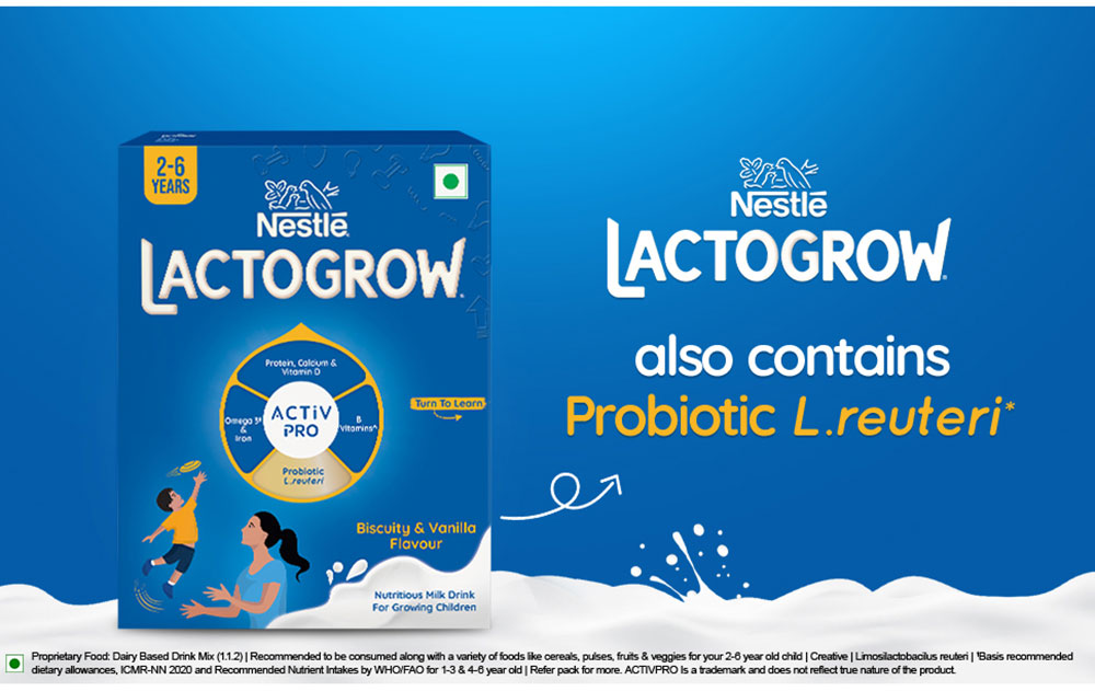 Nestle Lactogrow is a scientifically formulated, nutritious milk drink that offers a delightful biscuity vanilla flavour. Backed by Nestle's 155 years of expertise in nutrition, this milk beverage is designed to support your child's normal physical growth, brain development, cognitive function, immune system, and bone health. Busy parents can conveniently have Nestle Lactogrow delivered directly to their doorstep, ensuring their little ones always have access to wholesome nourishment. Featuring a blend of essential nutrients, including L. reuteri, whey protein, calcium, and vitamin D, this milk drink promotes your child's happy growth and development. The bag-in-box format provides enhanced safety, hygiene, and convenience. With its appealing taste and carefully selected ingredients, Nestle Lactogrow is the perfect choice to fuel your child's active, growing years.
