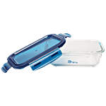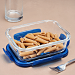 bb home Glass Seal & Lock Lunch Box/Storage Borosilicate Container - Rectangular, Blue, 640 ml