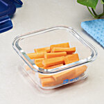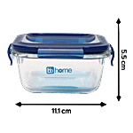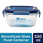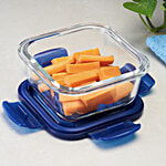 bb home Glass Seal & Lock Lunch Box/Storage Borosilicate Container - Square, Blue, 320 ml
