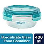 bb home Glass Seal & Lock Lunch Box/Storage Borosilicate Container - Round, Green, 400 ml