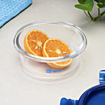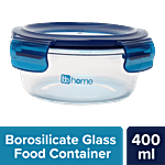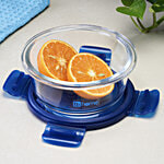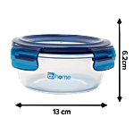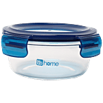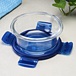 bb home Glass Lunch Box/Storage Borosilicate Container With Leak-Proof Lid - Round, Blue, 400 ml