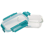 bb home Glass Lunch Box/Storage Borosilicate Container With Leak-Proof Lid - Rectangular, Green, 640 ml