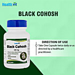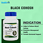 Healthvit Black Cohosh Root Extract 200 mg 60 Capsules Black cohosh root is used for many medicinal purposes. The extract has the potential to increase estrogen levels and provide relief from symptoms of menopause like Depression, Anxiety, Mood swings, Hot flashes, Discomfort, Sleep disturbances. It is also used in premenstrual syndrome(PMS), painful menstruation, acne, weakened bones(osteoporosis), and for starting labour in pregnant women.