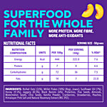 Rolled Oats (33%), Millet Flakes (10%), (Ragi, Jowar), Sunflower Oil (7%), Honey (9.5%), Jaggery (8.5%), Black Raisins (6%), Pistachios, Flax Seeds, Almonds, Watermelon Seeds, Chia Seeds, Vanilla Powder, Cranberries, Strawberries, Peaches, Himalayan Pink Salt and Natural Rosemary Extract (INS 392)