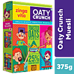 Zingavita Toasted Oats Muesli comes with the goodness of hand-picked whole grains (Oats, Ragi & Jowar) and an abundance of natural dried berries, nuts & seeds to give that crunchy texture and flavor Dig into the goodness of the ancient millet and the best of nature with every bite. Oats are heart-healthy and rich in fiber. They are power-packed with energy and are a great source of magnesium. Experience the freshness of hand toasted crunchy oats in every spoonful. Zingavita Toasted Oats Muesli comes with a blend of crunchy oats and choicest whole grain millets with freeze-dried natural berries to make the most of nutrition while adding a dash of freshness to every bowl. Your morning bowl of Oats Muesli is roasted just right to lock in the flavours and aromas of every ingredient. All the proteins, fiber, and vitamins and none of the bad stuff, no allergens, no gluten. Just berries, oats, seeds, and nuts to give you the best that nature has to offer.