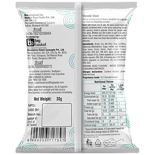 bb Gooddiet Brown Rice Chips With Oats - Wasabi Heat, Guilt-free Snacking, 30 g