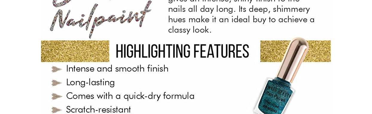 A unique collection of trendy 24 glitter nail polish to give a classy look to your fingers and toes. Enhance your personality and add an additional spark to your beauty. Differentiates looks with dense shining. Quality Premium and ideal for girls and women. It is high coverage glitter nail polish.