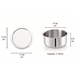 Nosh By Neelam Triply Stainless Steel Tope With Stainless Steel Lid has three layers. It is made with two layers of stainless steel and an aluminium core. This tope ensures even and consistent heating. It makes ideal cookware for any kitchen. It is easy to clean and wash. This tope is highly durable and long-lasting. It can be used for preparing and cooking food or stylishly serving it. This 17 cm tope has a stainless steel lid for easy and efficient cooking. It has an induction base making it compatible with both inductions as well as a gas stove.