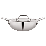 Nosh By Neelam Tri Ply Stainless Steel Kadai with Lid Kadhai has three layers. It is made with two layers of stainless steel and an aluminium core. This kadai ensures even and consistent heating. It makes ideal cookware for any kitchen. It is easy to clean and wash. This kadhai is highly durable and is long-lasting. This cookware is used for preparing and cooking food or stylishly serving food. It has a heavy-duty stainless steel handle that has a silicone insert so that it stays cool while cooking. This kadai has a lid for easy and efficient cooking. Kadhai is ideal for samosas, vegetables, making sweets and much more deep-frying foods. It is compatible with both gas stoves as well as induction.