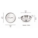 Nosh By Neelam Tri Ply Stainless Steel Kadai with Lid Kadhai has three layers. It is made with two layers of stainless steel and an aluminium core. This kadai ensures even and consistent heating. It makes ideal cookware for any kitchen. It is easy to clean and wash. This kadhai is highly durable and is long-lasting. This cookware is used for preparing and cooking food or stylishly serving food. It has a heavy-duty stainless steel handle that has a silicone insert so that it stays cool while cooking. This kadai has a lid for easy and efficient cooking. Kadhai is ideal for samosas, vegetables, making sweets and much more deep-frying foods. It is compatible with both gas stoves as well as induction.