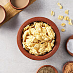 A traditional South Asian chaat and the perfect partner for your evenings, our Besan Papdi Namkeen is the snack you need to satisfy your hunger pangs and cravings and is the perfect munchie to carry with you everywhere. Perfectly blended with fresh and local Gujarati spices just the way you like it, our snacky treats come with a spicy and sweet tadka and are naturally processed with the finest split chickpea flour and blended well with corn flakes, red lentils and red chilli powder. Our Besan Papdi Namkeen is a burst of flavour and a traditional recipe that you can revel in at any time of the day and is sure to make your tastebuds dance. A natural energy booster, our savoury and sweet treat is best accompanied by any beverage of your choice and is ready to eat. Packed with nutrition, our Besan Papdi Namkeen has no added preservatives and no trans fat and is the best snack to have in your pantry. Indulge in savour goodness with our Besan Papdi Namkeen now!