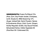 Taali Protein Puff Blend (Jowar, Chickpeas, Urad Dal, Rice, Soy Protein Isolate), BBQ Seasoning (Iodised Salt, Garlic Powder, Sugar, Onion Powder, Corn Starch, Acidity Regulator (E33), Chilli), Edible Vegetable Oil