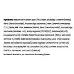 Medium Fat Ice Cream Layer (79%): Water, Milk Solids, Sweetener {Maltitol, Stevia (Steviol Glycoside)}I, Fructose Oligo Saccharide, Cream Caramel Confectionary (7.7%) {Water, Milk Solids, Sweetener (Maltitol, Stevia (Steviol Glycoside)} , Fructose Oligosaccharide, Stabilizers (440), Acidity Regulator 331, 500 (Li)]}, Stabilizers (410, 412), Emulsifiers (471, 477), Contains Permitted Natural Food Color 150 (C)] And Added Artificial Flavoring Substances (Caramel). Outer Coating Layer (21%): Sweetener {Maltitol, Stevia (Steviol Glycoside)}, Edible Vegetable Oil (Palm Kernel Oil, Palm Oil), Milk Solids, Cocoa Solids, Milk Fat & Emulsifiers (442, 476), Contains Added Nature Identical Flavoring Substances (Vanillin).