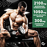 Glucosamine Sulphate 1800 mg, Chondroitin Sulphate 450 mg, MSM (Methylsulfonylmethane) 1005 mg, Boswellia Serrata Extract 150 mg, Curcuma Longa (95% Standardized Curcuminoids) 75 mg, Piperine (95% Standardized Piperine) 15 mg, Rosehip Extract 150 mg, Ginger Extract 150 mg.