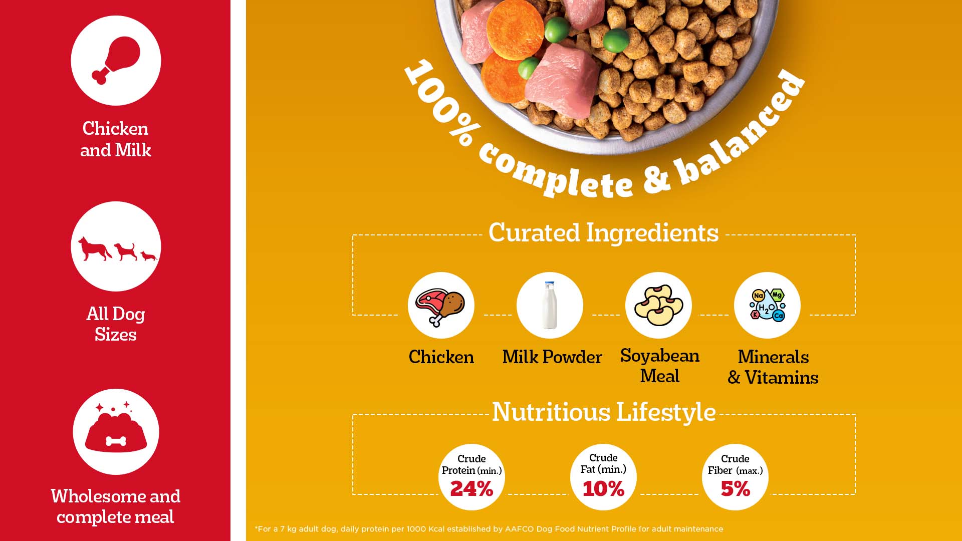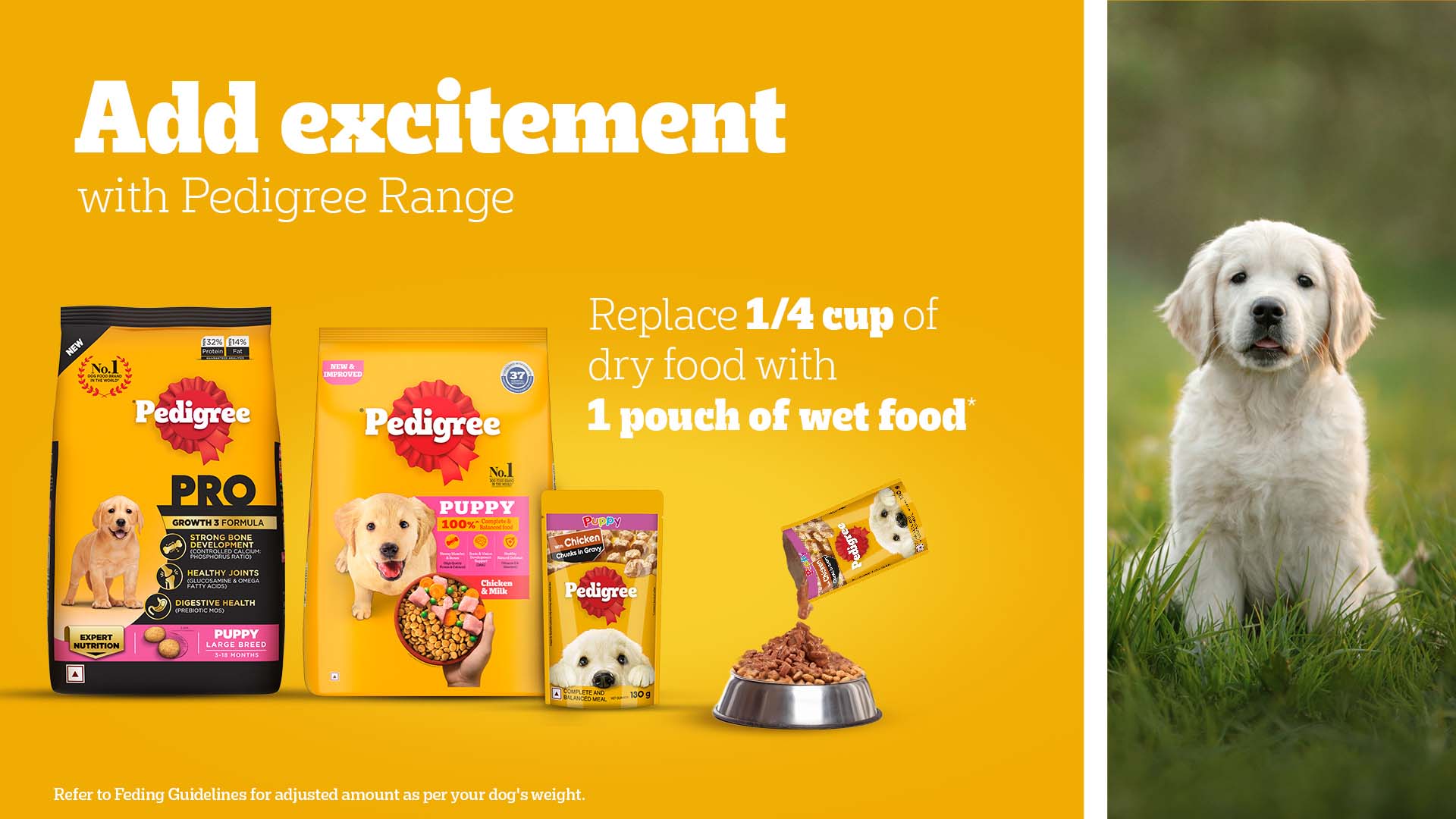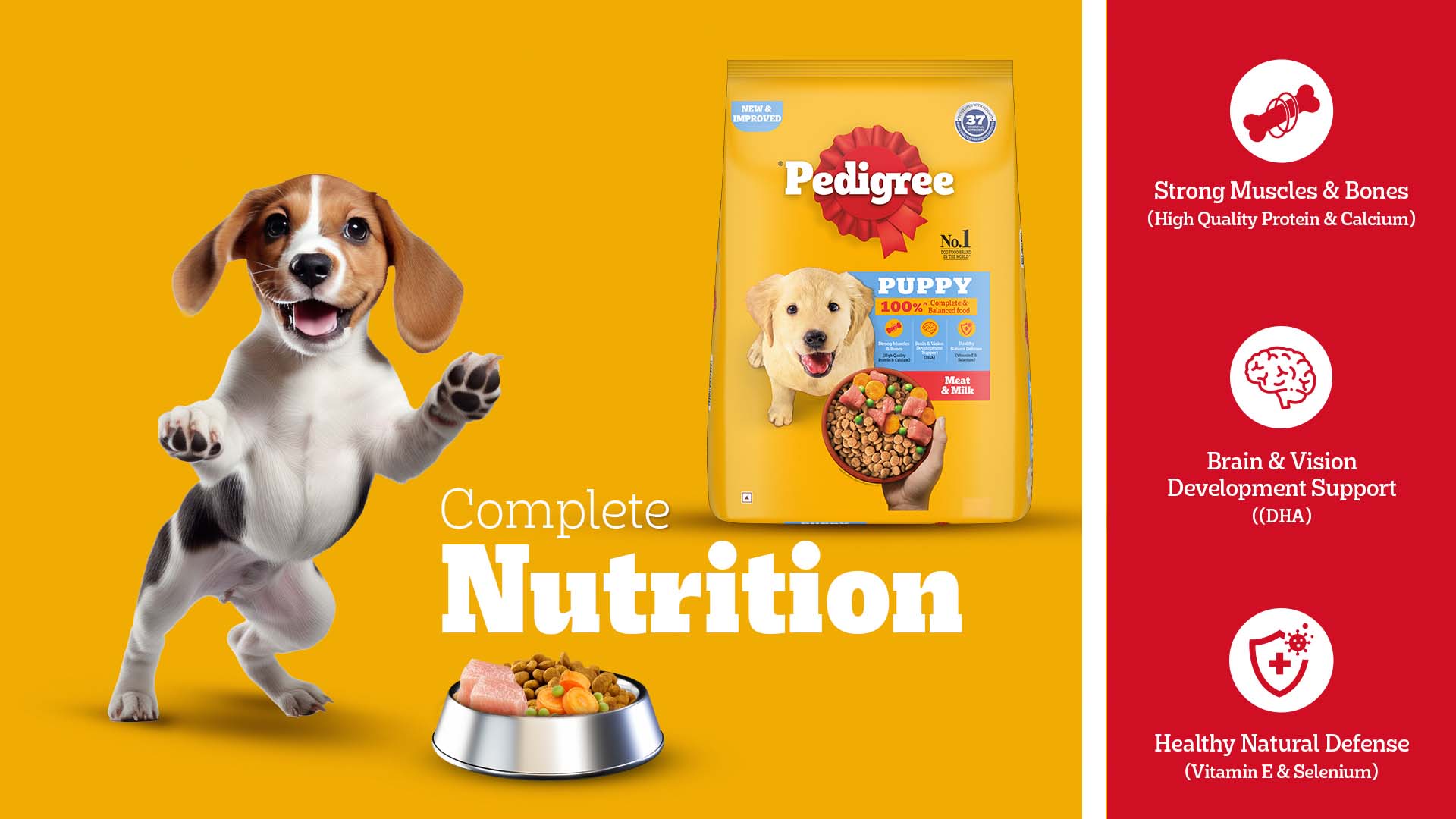 Pedigree Puppy Dry Dog Food, Meat & Milk, is a wholesome and delectable meal that provides your furry friend with complete and balanced nutrition. Developed by experts, this puppy food contains 37 essential nutrients, including high-quality protein and calcium to support strong muscles and bones, DHA for brain and vision development, and Vitamin E and selenium to promote a healthy natural defence. The goodness of quality ingredients, such as meat and milk, blends into a tasty and nutritious diet that your little companion will love. When fed as recommended, this dry dog food supports your puppy’s well-being, with a flavour that is sure to delight their taste buds. Pedigree’s recipes are crafted based on research from the Waltham Centre for Pet Nutrition, and every product meets the stringent requirements set by the U.S. National Academy of Sciences. Give your furry friend the nourishment they deserve with Pedigree Puppy Dry Dog Food.