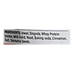 Jowar, Singoda, Whey Protein Isolate, Milk Solid, Yeast, Baking Soda, Cinnamon, Tukmaria Seeds, Salt.