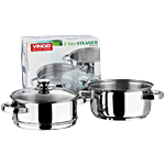 Vinod Stainless Steel 2 Tier Steamer with Glass Lid is a safe steamer made from high-quality stainless steel. It is an ideal cookware for any kitchen. It is hygienic and easy to clean. This cooker ensures even heat distribution at the base of the cooker. It is strong, easy to maintain and safe to use. An appropriate healthy cooking utensil as it retains the nutrients and flavour. Cooking in the steamer is generally a better option when compared to fried foods that contain excess oils and empty calories.