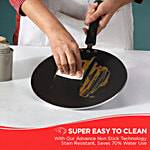Vinod Concave Tawa is made with high-quality aluminium, which helps in the even distribution of heat. It is an ideal cookware for any kitchen and has an even non-stick coating. It is easy to clean, wash and is long-lasting. This cookware is used for preparing and cooking food. It doesn't burn food and retains essential minerals in food as it has a non-stick granite coating. Tawa is used to make dosa, chapatti, roti, paratha, etc. It has a comfortable elegant heat resistant matte finish handle which makes it easy to carry and handle.