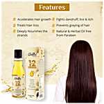 12 Herb Hair Oil helps reduce hair fall and helps in hair growth. It is non-greasy and oily oil so washes easily leaving hair soft and smooth. A perfect blend of herbal ingredients which helps to strengthen the roots and prevents hair fall. Keeps the scalp healthy by moisturizing the scalp and not making it look dry. This is an Advanced, all-in-one hair care solution that suits all scalp & hair types.