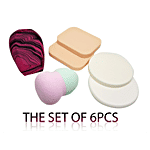 Bronson 6 in 1 Makeup Blender Sponge and Puff set contains all the tools you need to perfect your everyday makeup look. This kit contains 2 beauty sponges and 4 sponge puffs which can be used to apply and blend makeup flawlessly. Each item is washable and can be reused. This kit contains: Multipurpose blender x 1: The curved blender features a pointed end to blend makeup flawlessly around the eyes and nose and a wide base that creates a flawless base on the forehead, cheeks and jaw. Absorbs minimal product, to avoid wastage. Faceted makeup sponge x 1: Flat, faceted sides make this the perfect sponge to conceal and bake the undereye area as well as blend contour all over for a streak-free result. Round puff x 2: This puff is perfect to even out your foundation for a flawless finish. You can also use it to apply translucent powder or bronzer. Square sponge x 2: This flat sponge can be used to apply cream or liquid makeup all over the face, including foundation, cream or liquid highlight, blush etc.