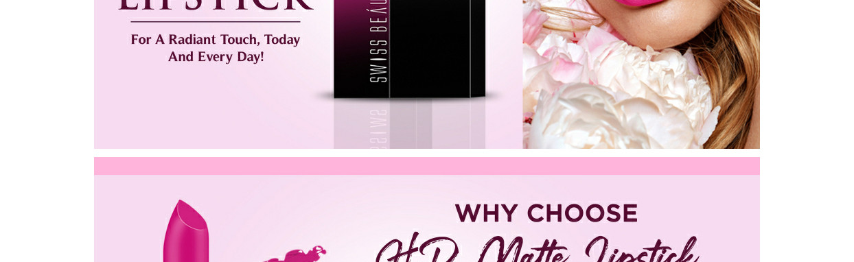 A highly pigmented power bullet Matte Lipstick delivers maximum color payoff and extreme comfort. Give a radiant touch to your whole look with the Swiss Beauty HD Matte Lipsticks collection, Experience the same plush, pigment-rich formula. The formulation delivers flawless coverage and assures precise application for a perfectly contoured pout.