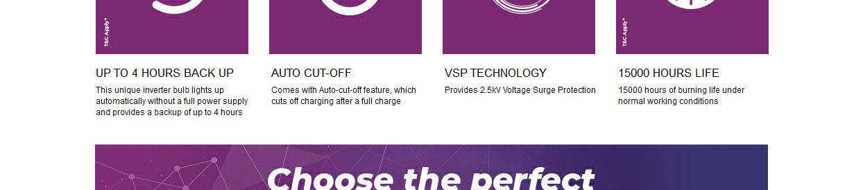 5. Features:- Light Back up of up to 4 hrs, Battery charging auto cut-off after full charge, Durable Li-ion battery, Warranty 1 year on product.