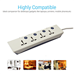 6. Features:- Includes 4 Universal sockets with master switch, Easy to Use, Durable spike guard, Wall /Table Mounting option.