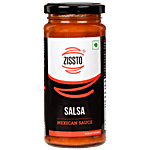 Zissto Salsa Sauce that is full of flavours. It is made with tomatoes, onions, herbs, and chilies. It has a tangy, sweet and spicy taste. It is rich in vitamins C and A, which can help increase collagen production in the body, which can create more lustrous skin, and assists in thyroid function and regulation. It can be used in different ways.