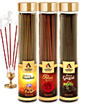 The Aroma Factory Incense Sticks/Agarbatti - Assorted Flavours, Made With 0% Charcoal, 100 g (Pack of 3, With Free Holder)