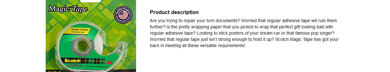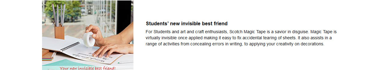 About the ProductScotch Magic Tape Refill Roll (19mmx32.9m) is a damage-free mounting and decor tape. It has adhesive technology, so it sticks well without damaging walls, photos, and art. This is safe for many surfaces. Display the things you love without ruining your walls. It doesn’t leave any sticky residue behind on any surface. Magic Tape is virtually invisible once applied.