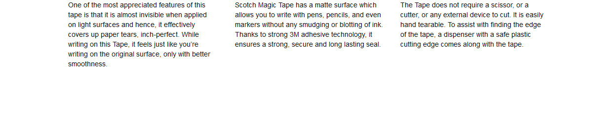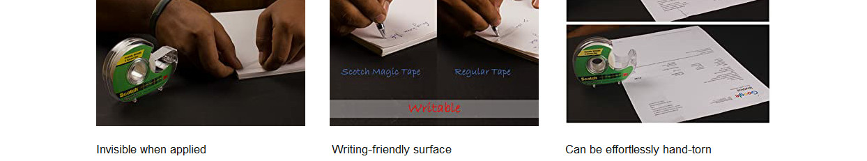 7. Features:- It is invisible, writable and hand tearable, can be written on with a pen, pencil or marker, and doesn't leave a black outline.