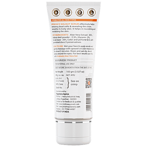 No Question askedKrishnas Aloe Vera Walnut Scrub - Gentle Exfoliation, Purifies Skin