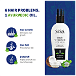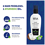 100% Ayurvedic oil, 0% Mineral oil Sesa Ayurvedic Hair Vitaliser for Men is a certified Ayurvedic oil crafted using the ancient Kshir Pak Vidhi by boiling 19 medicinal herbs and 11 nourishing oils in pure cow's milk for 22 hours. It helps stimulate hair growth. Suitable for all hair types, it nourishes your scalp from within, helps prevent dandruff, itchiness, premature greying, and thinning of hair. It contains 98.8% pure herbs and oils. No extracts, No mineral oil. It is certified by the ministry of Ayush as a Proprietary Ayurvedic Medicine. It can be used as a curative and preventive therapy for hair and scalp related disorders. For best results, we recommend leaving Sesa Ayurvedic Hair Vitaliser for Men overnight and cleansing with Sesa Ayurvedic Strong Roots Shampoo + Conditioner 2-3 times a week. Sesa Hair Vitaliser for Men is effective against 6 common hair and scalp problems. It stimulates hair growth, fight’s hair fall, curb’s dandruff, itchiness, and scalp infections, delays premature greying and thinning, protects from UV rays and pollution damage, nourishes hair and strengthens hair follicles.