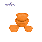 Princeware Biscuit/Dryfruit/Khakra Plastic Store Fresh Container/Bowl Set - 5454-4, BPA-Free, Orange, 4 pcs