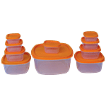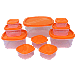 Princeware Plastic Container Set Square - Airtight, 5657C1, Orange, 10 pcs