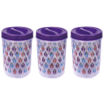 Princeware Twister Packaged Container keeps moisture out and allows you to safely store food items without the danger of outside elements affecting your food quality. It is made of high-quality BPA-free plastic which makes it highly durable and long-lasting. It is a transparent container which makes it easy to keep see the inside content without opening each container. The airtight seal keeps the food stored in this container fresh for a long period. It is designed for long-term storage and is stackable which makes it easy to store without consuming much space. This sleek-looking container goes well with any kitchen decor or tabletop. It is sturdy, hygienic, food-safe, scratch-resistant, dishwasher safe, refrigerator/ freezer safe, microwave safe (without lid). Ideal to store several items like rice grains, wheat, sugar, flour, oil, snacks or whatever else you need. These containers have a printed design and it is easy to use.