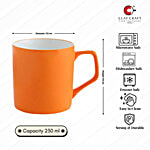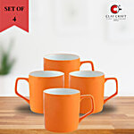 Clay Craft Coffee Mug - Ceramic, Orange, Director,230 ml, 4 pcs (Set of 4)