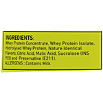 Whey Protein Concentrate, Whey Protein Isolate, Hydrolysed Whey Protein. Whey Powder Nature Identical Flavors, Citric Acid. Malic Acid, Sucralose (INS 955) and Preservative (E211). ALLERGENS Contains Milk.