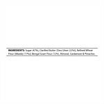 Sugar (47%), Clarified Butter [Desi Ghee (22%)], Refined Wheat Flour [(Maida)(17%)], Bengal Gram Flour (12%), Almonds, Cardamom & Pistachio.