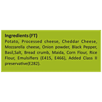 Processed Cheese, Cheddar Cheese, Mozzarella Cheese, Potato, Onion Powder, Black Pepper, Basil, Salt, Bread Crumb, Maida, Corn Flour, Rice Flour, Emulsifiers (E415, E466), Added Class II Preservative(E282).