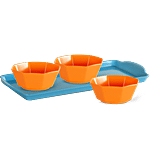 No Question askedIveo Snack Bowl & Tray Set - 100% Melamine, Firozi & Orange, Octa