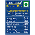 MA1 RASO1 Pulav Premium Basmati Rice has a characterized flavour and aroma of its natural lustrous grains. It ensures superior quality and high nutritional value. It is non-sticky and becomes fluffy after cooking. It is filled with fragrance and is light. This rice is zero in cholesterol and has a high content of fibre. It is mostly used to make anything from simple peas pulav to exotic, Persian recipes.