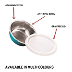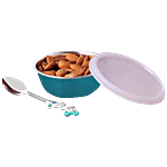 PddFalcon Steel Bowl With Lid & Spoon - Firozi, (Set of 1)
