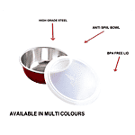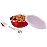 PddFalcon Steel Bowl With Lid & Spoon - Red, (Set of 1)